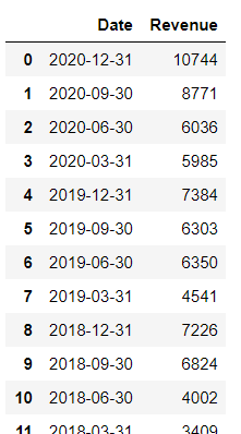 tesla_revenue = tesla_revenue.append({"Date":date, "Revenue":revenue}, ignore_index=True)