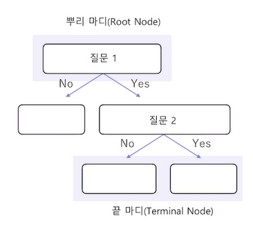 (도중에 나눠진 마디는 중간 마디(Internal Node))