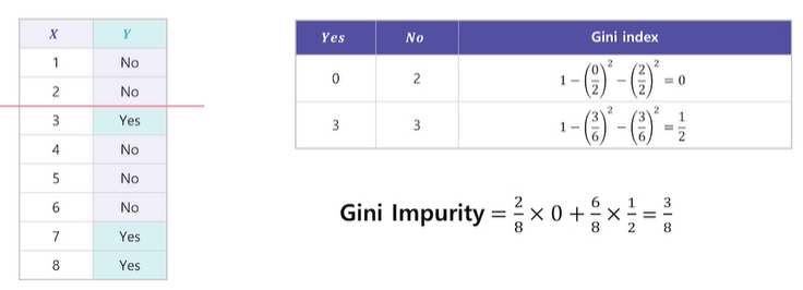 - 데이터가 많이 섞여 있을 수록 불순도가 높게 측정됨