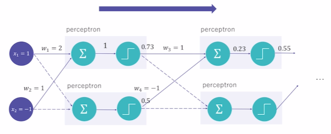 - 나온 값 1의 activation function 결과 0.73이 나옴