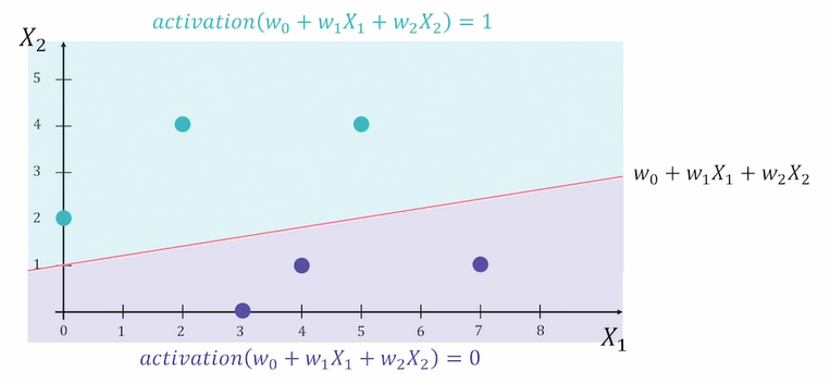 (즉, 한 개의 선을 기준으로 나누어 해결 가능한 문제: '선형적인 문제'라고 함 / 그 반대는 '비선형적인 문제')